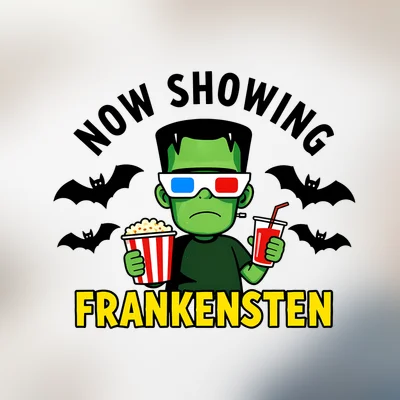 A now showing frankensten design featuring png file, sublimation, digital download.