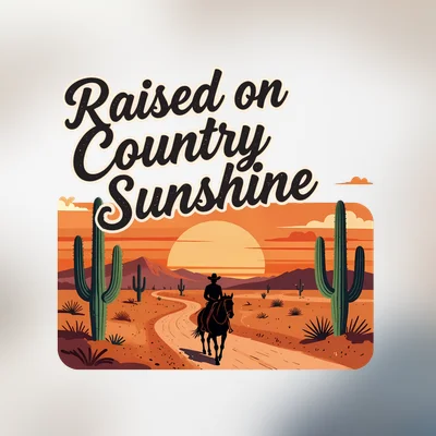 A raised on country sunshine design featuring png file, sublimation, digital download.