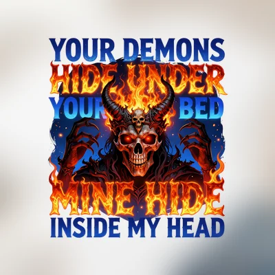 A your demons hide under your bed mine hide inside my head design featuring png file, sublimation, digital download.